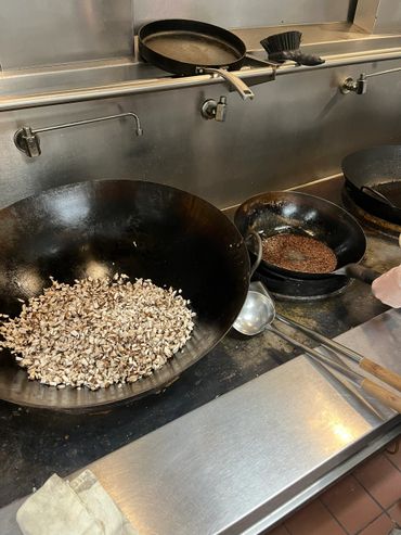 FROM HEIDI: Krapao seeds, a type of Thai Holy Basil, is often substituted with Thai Basil in the States and misses the mark. I chased after the plant’s flavor for years, my craving only ever stoked by occasional visits to Thailand. On my last visit in 2019, Na (Aunt) Urm pointed out what grew through cracks next to our family house in Sappaya — it was krapao.